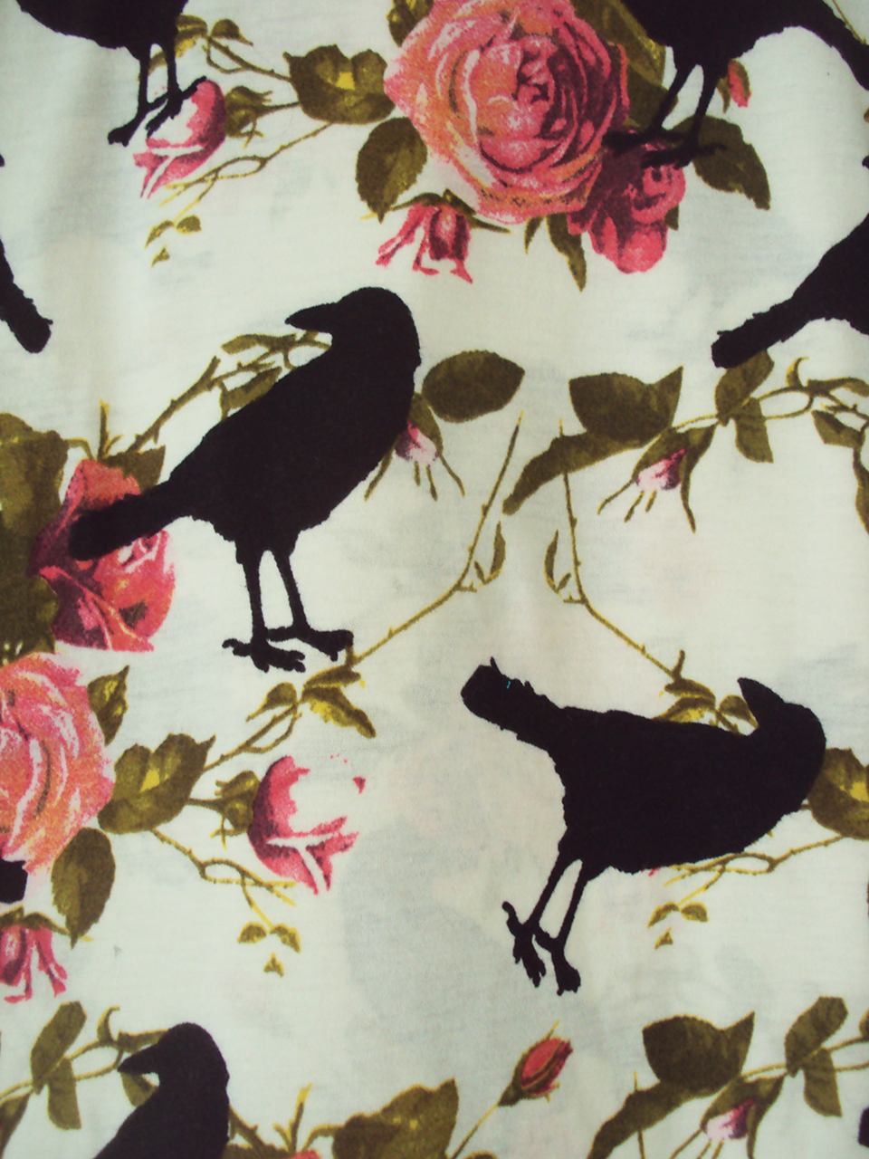 The one with the black birds and the roses ended up in topshop about 3 years ago. I bought an oversized crop top in that fabric, that was sooo big I ended up cutting it up and using it for the bodice and front underskirt of a clubbing outfit and the leftovers for a cushion.
