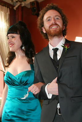 I hesitate to use the word 'theme', but we definitely wanted our wedding to have an overall look. Because we were going down a very DIY route with everything, and had picked a reception venue that looked like a club that we could decorate as we pleased, we had to think hard about what we wanted because we were going to have to invent it all. Everything from the venue to our dresses ended up referencing a mid-century vintage/cocktail/casino/playing cards/speak-easy/cabaret kind of vibe.