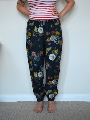 After the relative success of #1, which I view as a wearable toile, I was excited to crack on with another pair soon after. So I lowered the height of the waist by 2cm at the front and 3cm at the back (blending between the two at the sides). I decided to leave the overall size/width the same in case my next piece of fabric had a better recovery/wearability than the blue Ditto stuff. I was also excited to try out the full-length of my pattern, which I'd kept accurate to the originals in length and width round the ankles.
